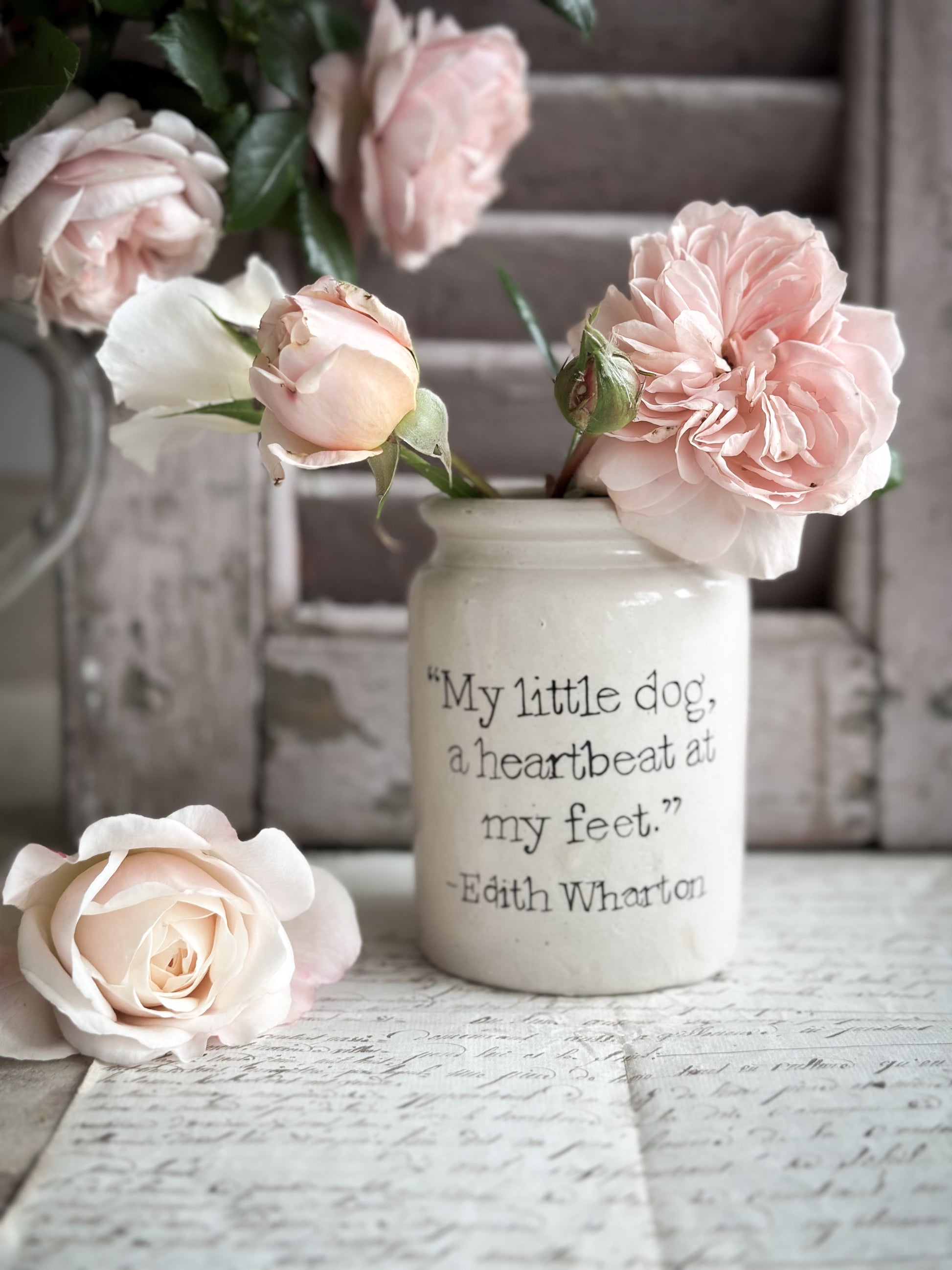 A Victorian unearthed stoneware pottery jar with a hand painted quote.