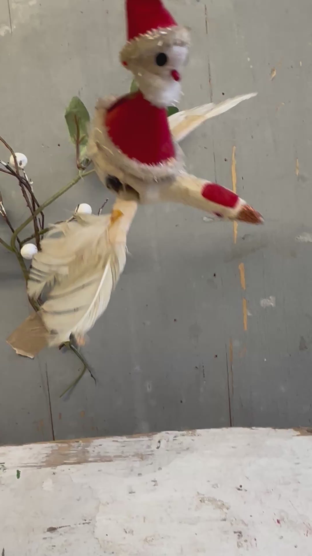 Mid-Century Japanese Flying Father Christmas Ornament – Spun Cotton & Feather Wings – c.1950s–60s