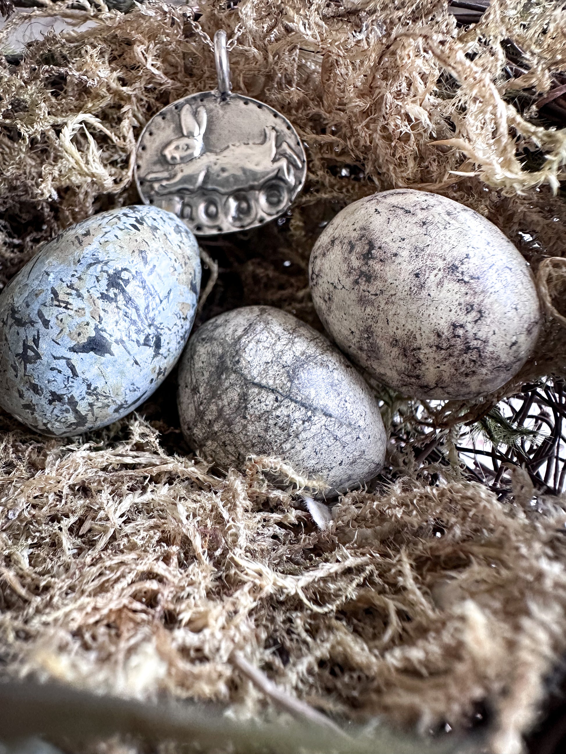 This Rabbit of Hope pendant is created using silver clay pressed into a vintage Wedgwood sprig mould, capturing the gentle movement of the running rabbit before being kiln-fired into solid .999 fine silver.