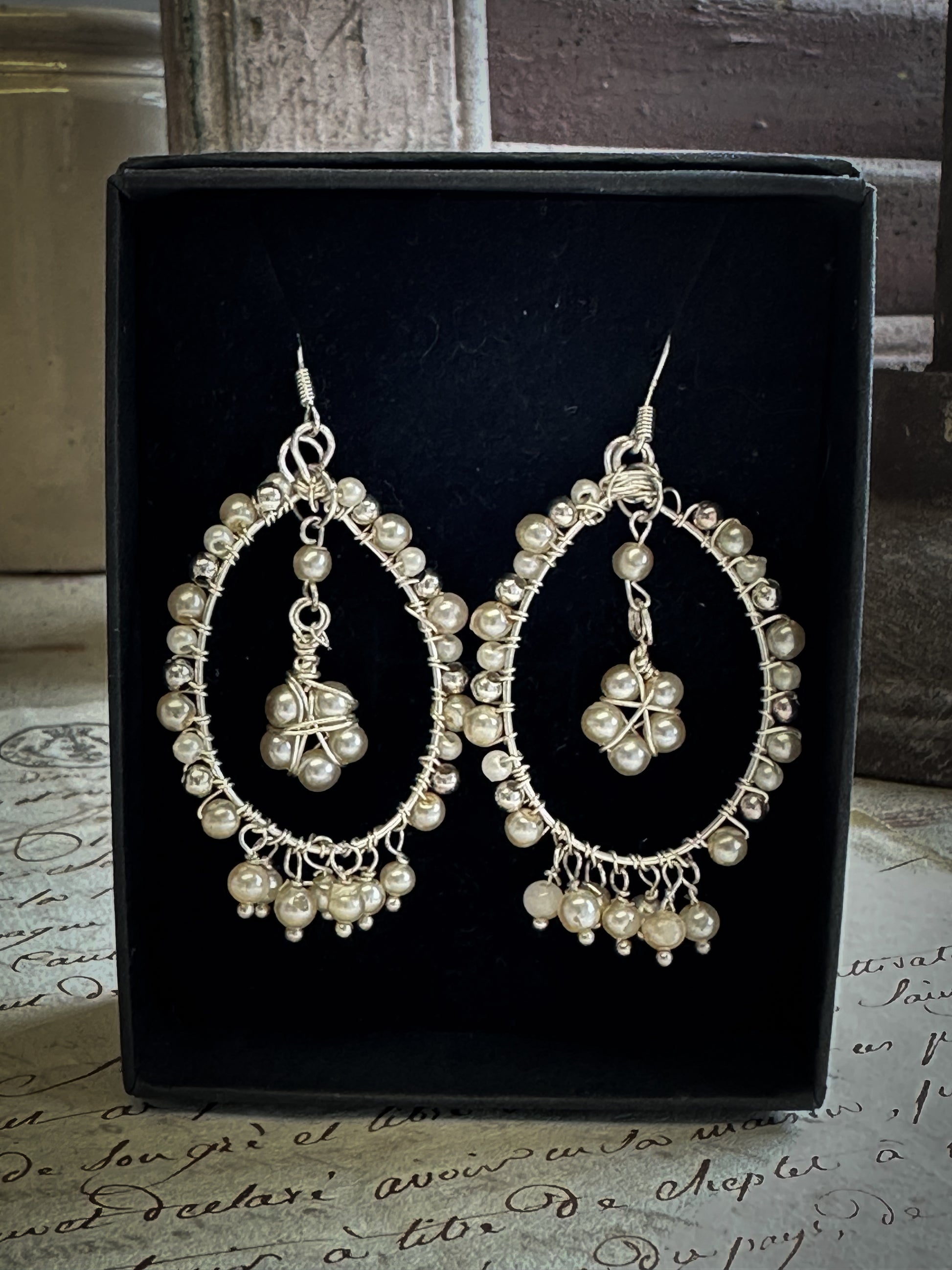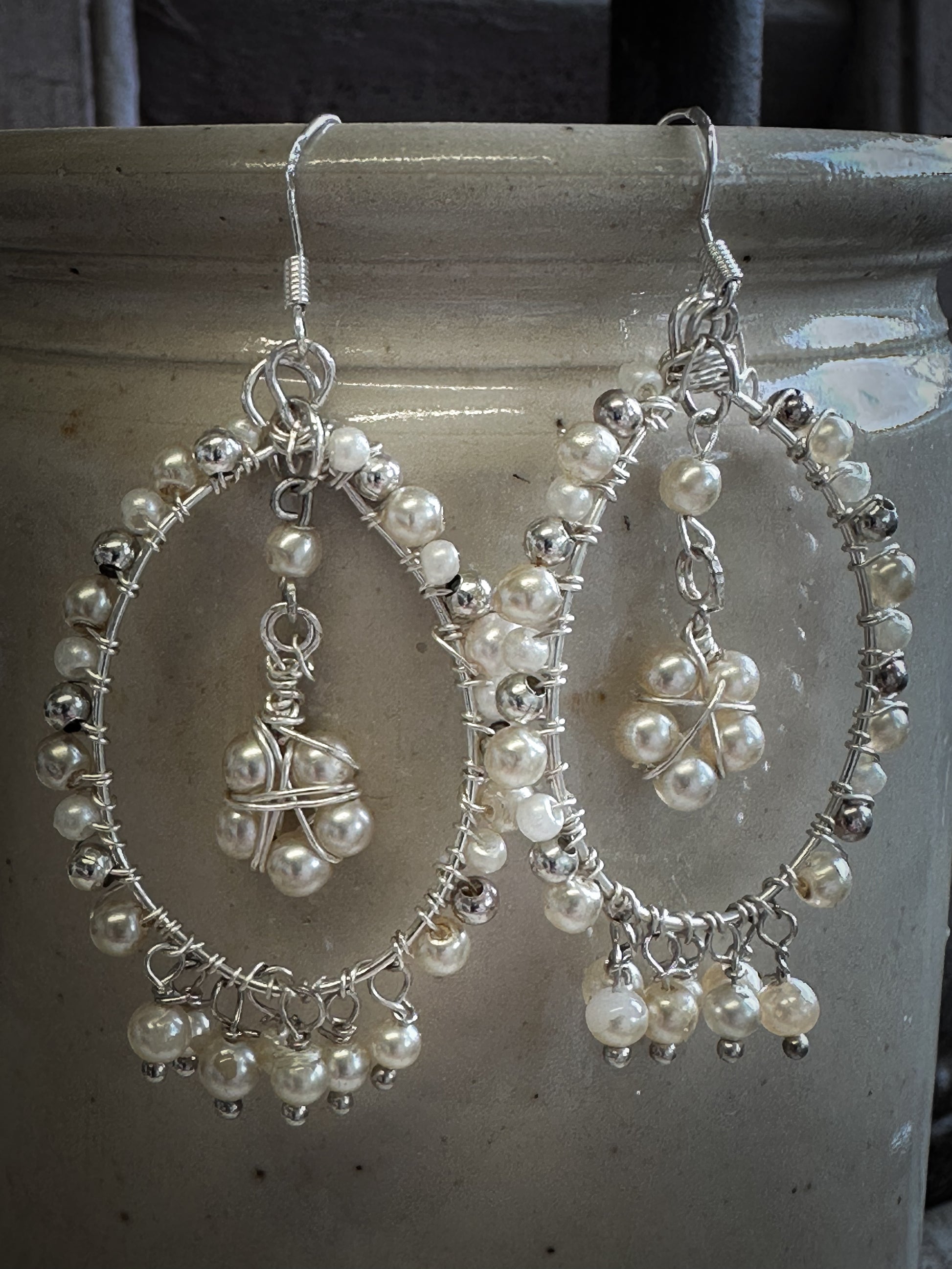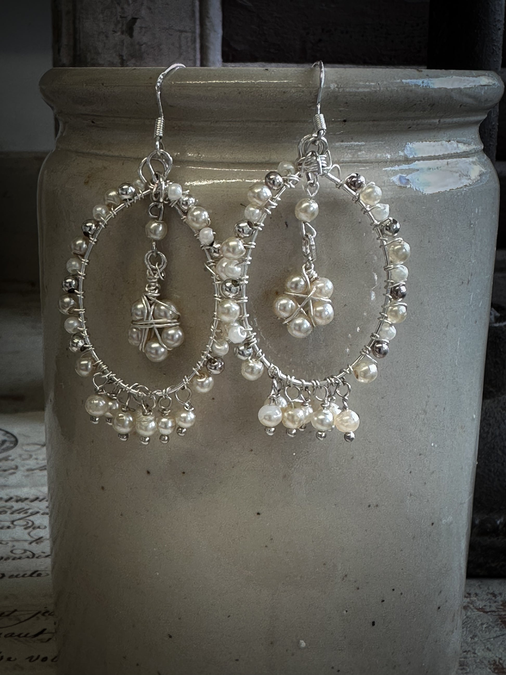 Vintage Pearl beaded Chandelier Daisy Earrings by Jealous Moon Jewellery