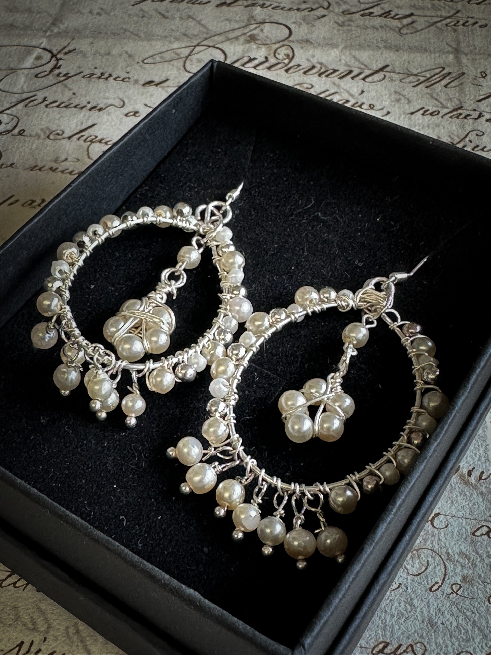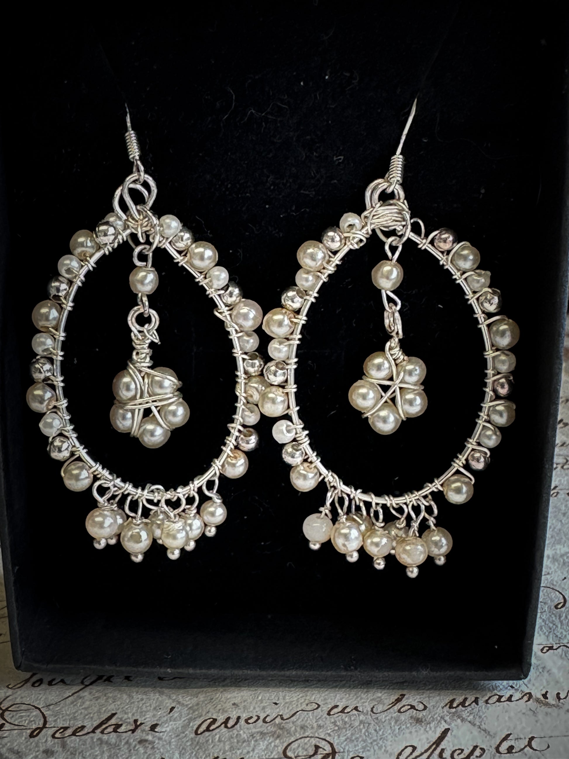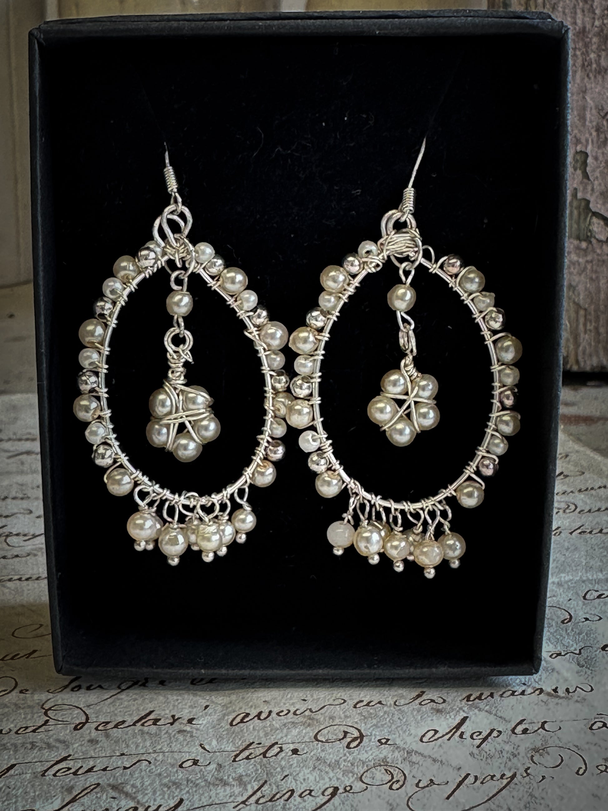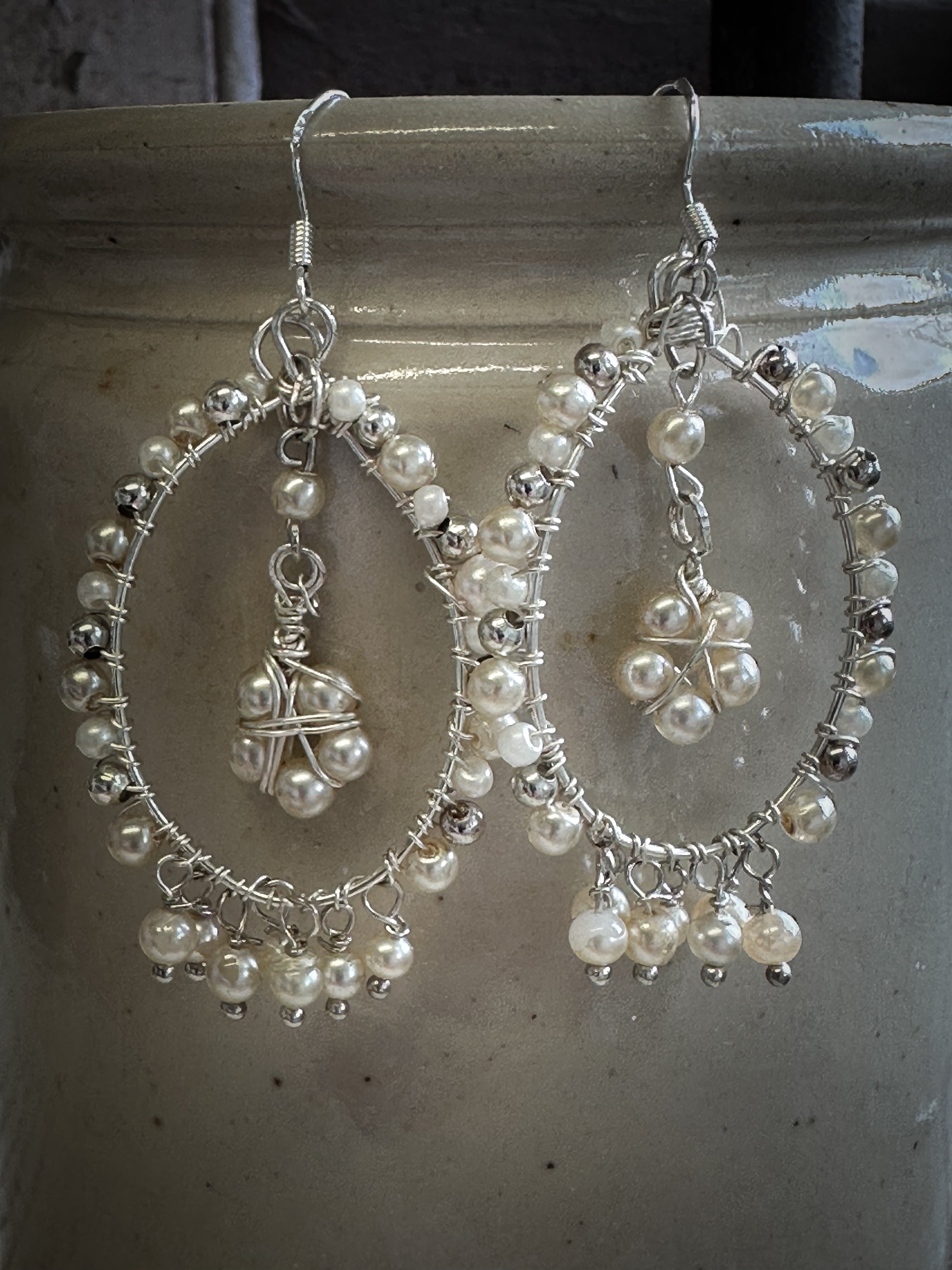 Vintage Pearl beaded Chandelier Daisy Earrings by Jealous Moon Jewellery