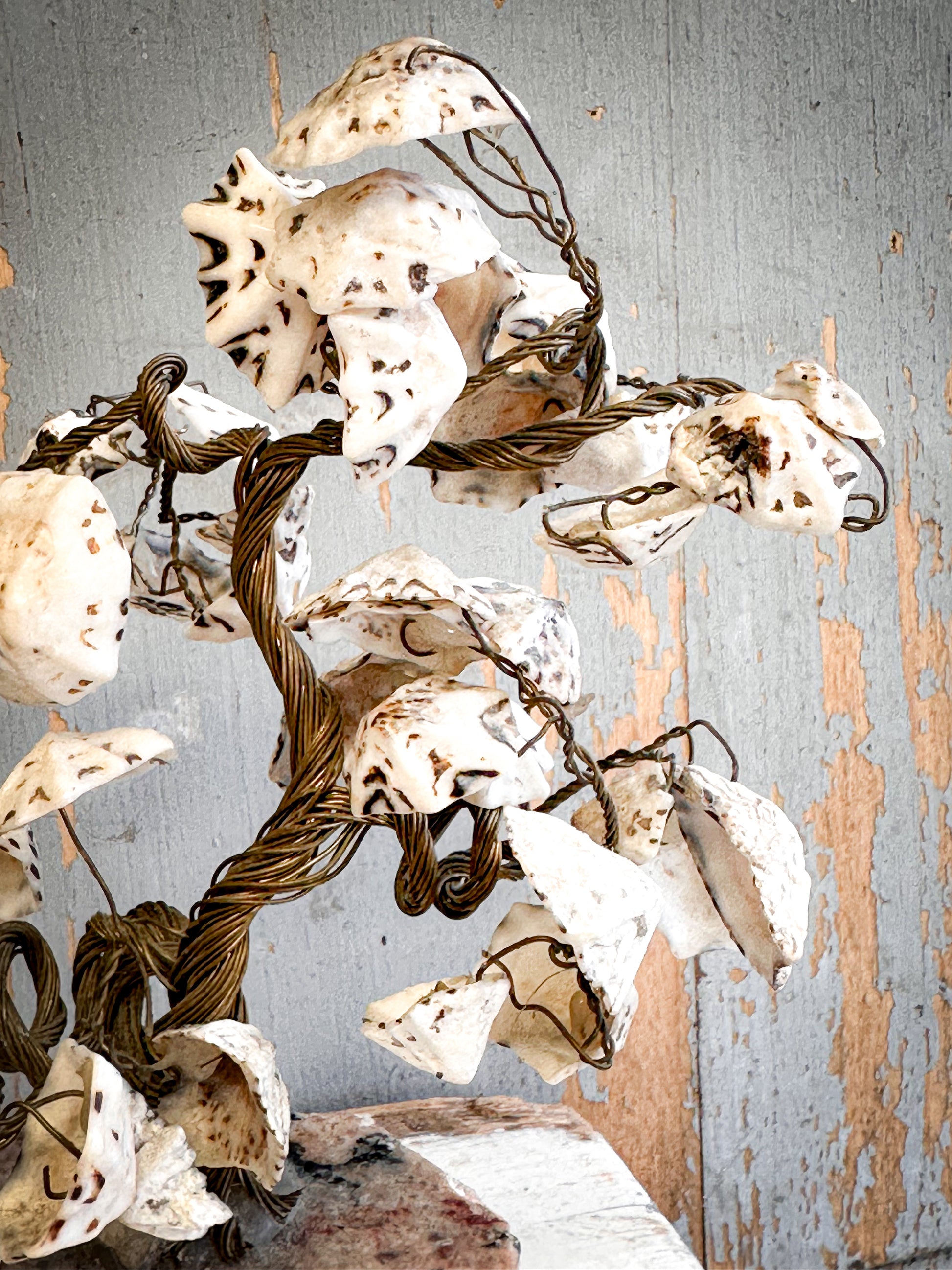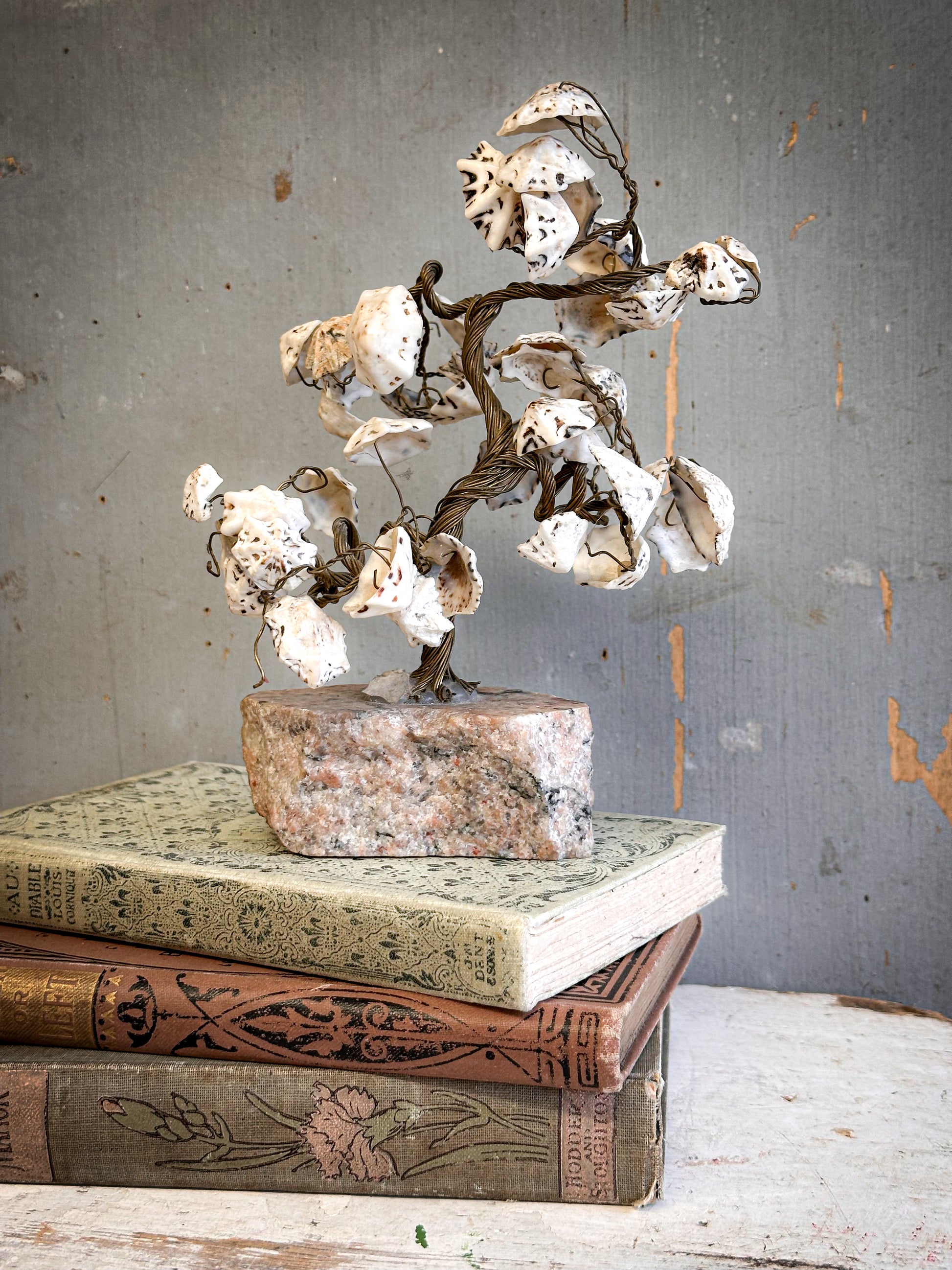 A wonderfully charming vintage “friendship tree” — hand-formed from twisted wire and finished with delicate shell leaves, each piece creating a beautifully organic, sculptural silhouette.