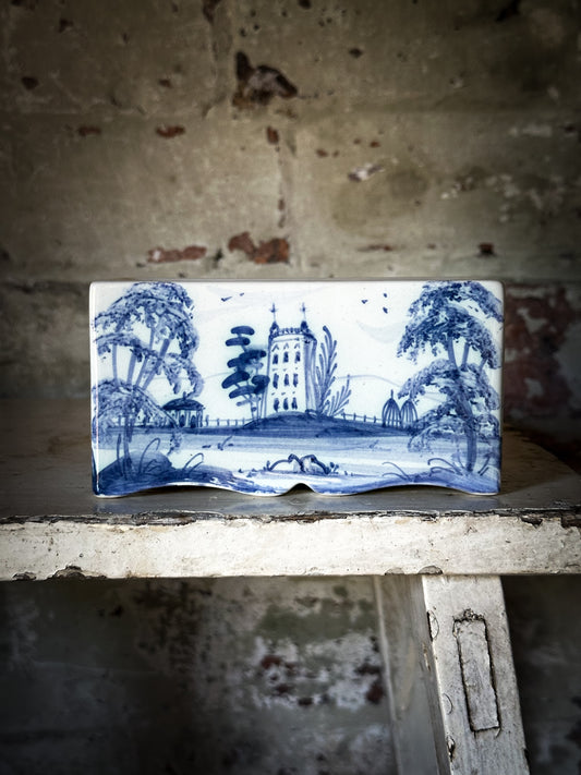 A beautiful Isis by Deborah seers Oxford, blue and white flower brick, tulipiere, flower frog, blue and white tin glaze vase