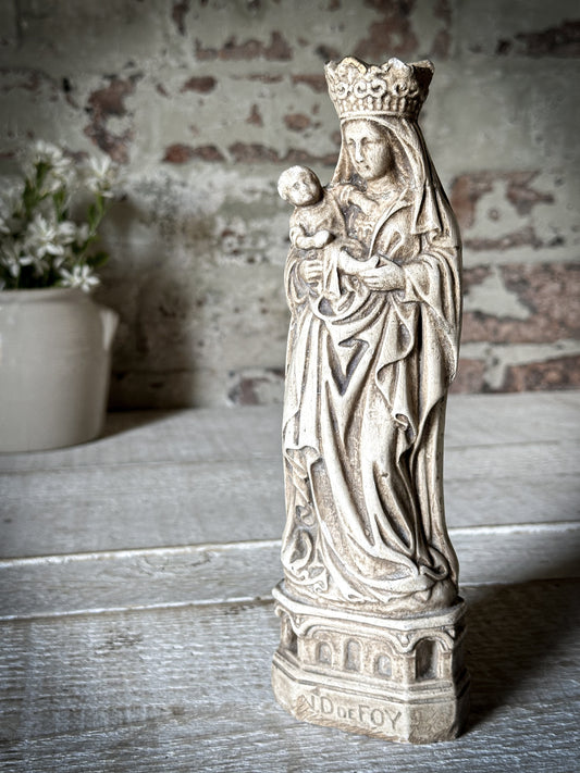 An Antique French Chalk Ware Religious Statue of the Madonna and Child